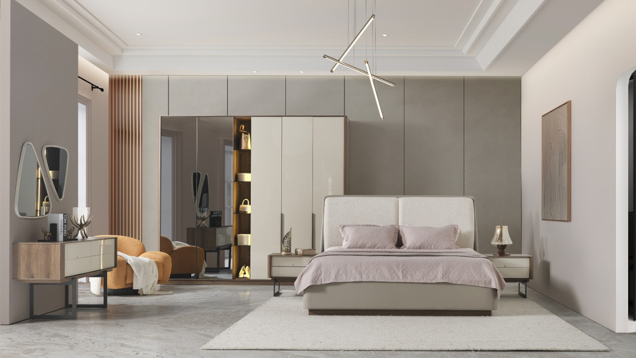 This bedroom set perfectly balances style and practicality. With ample storage space for all your essentials, the Valencia Bedroom Set maintains its luxurious appearance while keeping your bedroom organized. The spacious wardrobe, nightstand, and dresser provide ample room for clothes, accessories, and more.